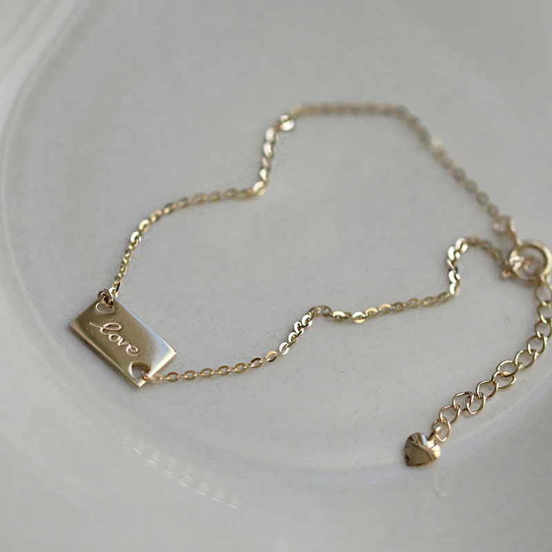 Браслет INZATT из настоящего серебра 925 пробы с квадратными сердечками, 14 к, золотистый, Модные женские ювелирные изделия в стиле хип-хоп, минималистичные аксессуары