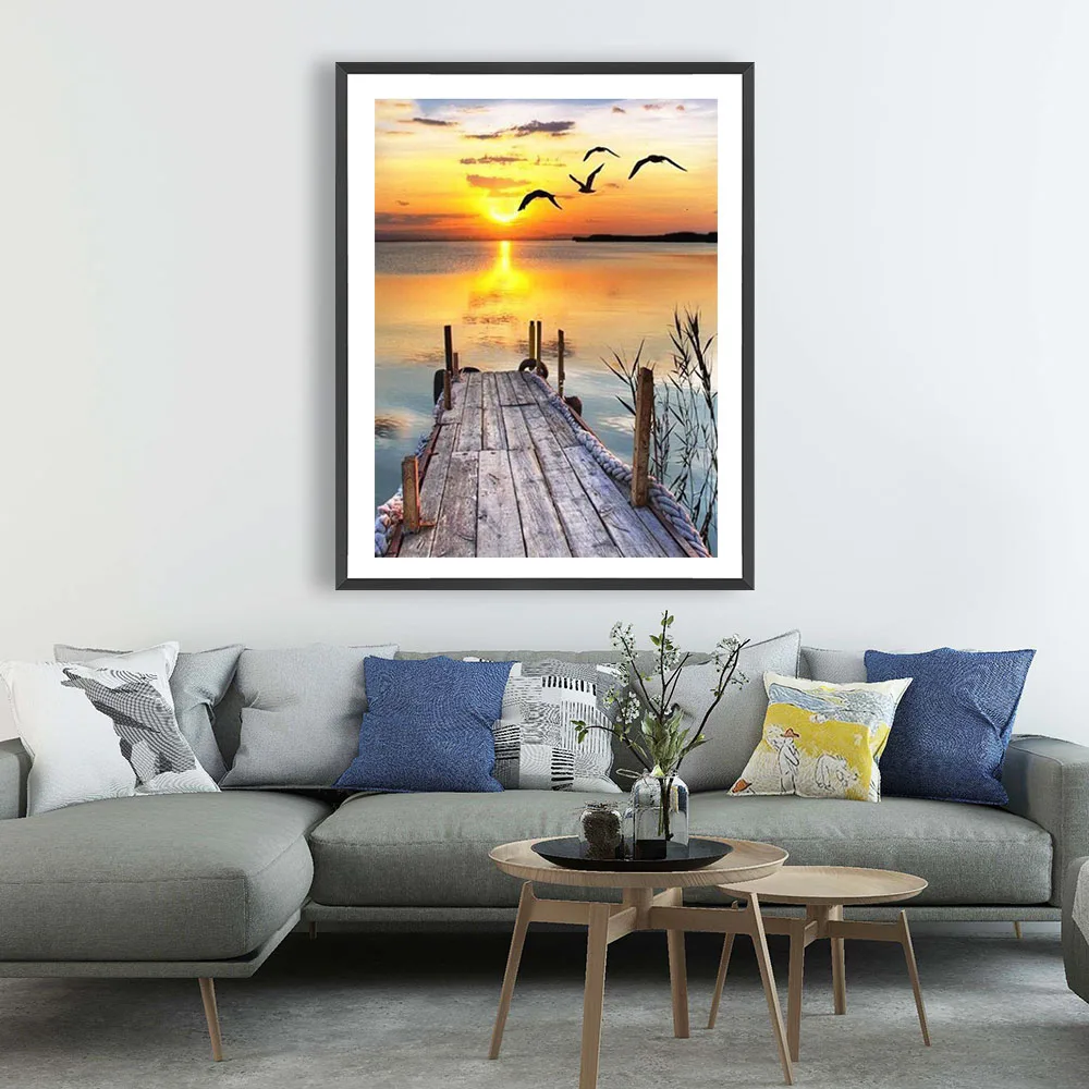 5D DIY алмазная живопись, пейзаж, закат, морской комплект, полная в...