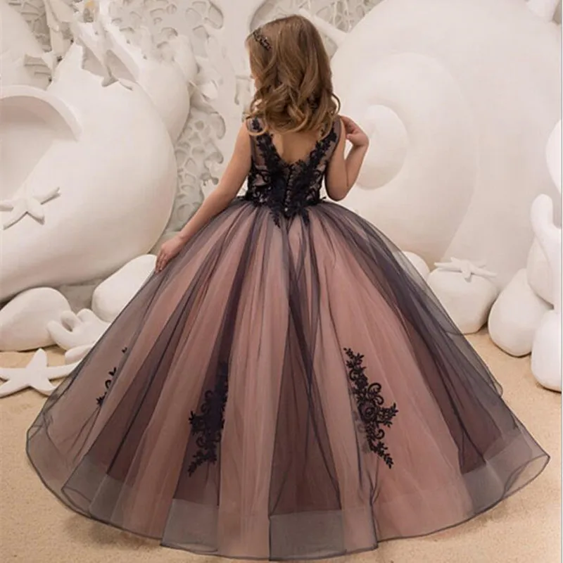 Платье для девочки с аппликацией, пышное Тюлевое вечернее платье бе...