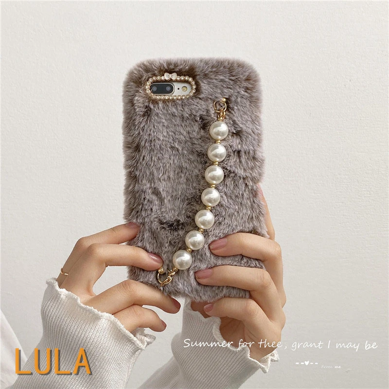 Чехол с ремешком на запястье из кроличьего меха для Huawei Mate 20 Lite Pro P10 P9 P8 Lite 2017 Honor 8 9 Lite, мягкий чехол с жемчужной цепочкой