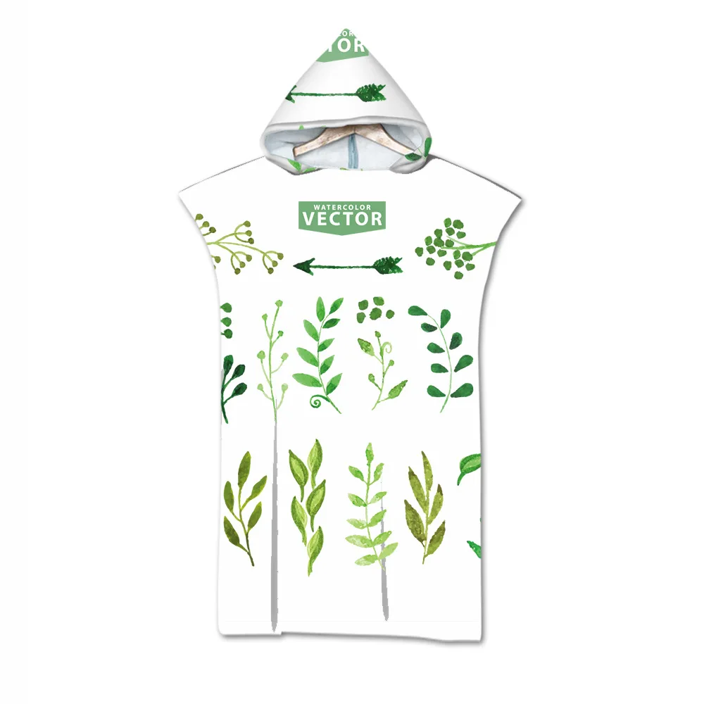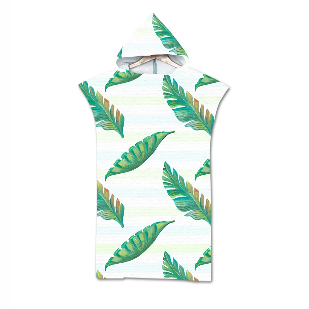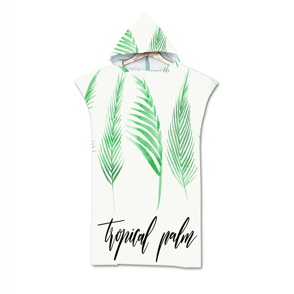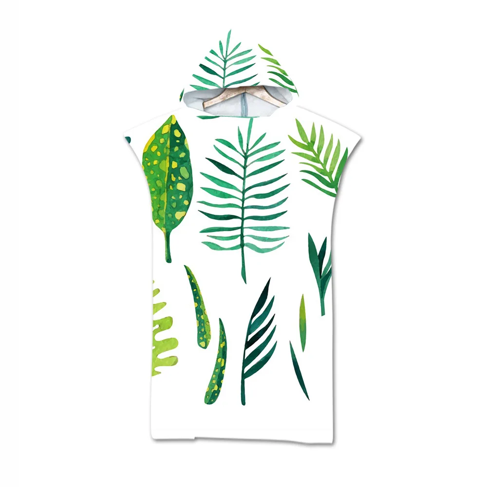 Пляжное полотенце-пончо с капюшоном и зелеными листьями для взрослых на открытом воздухе