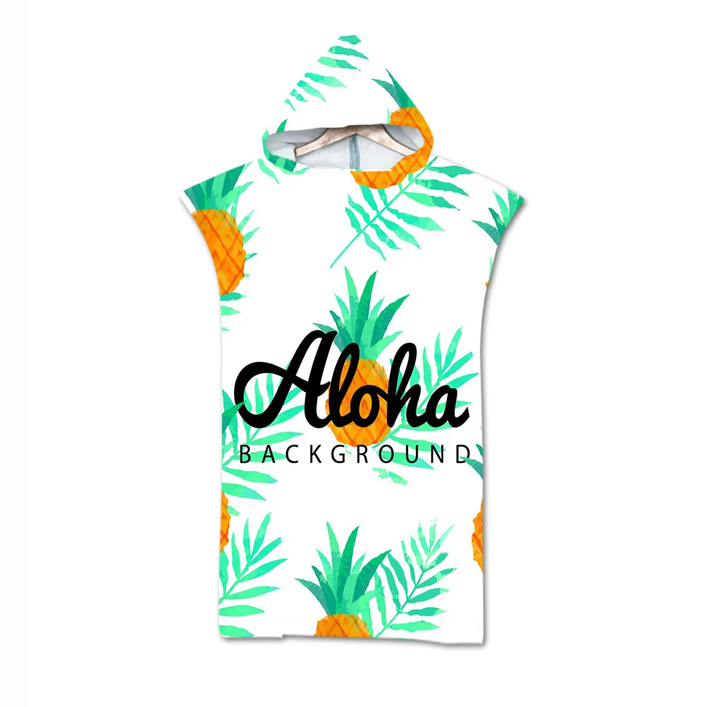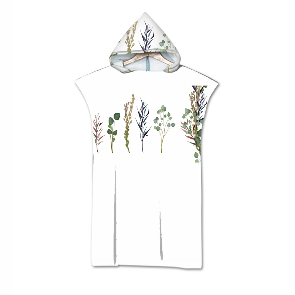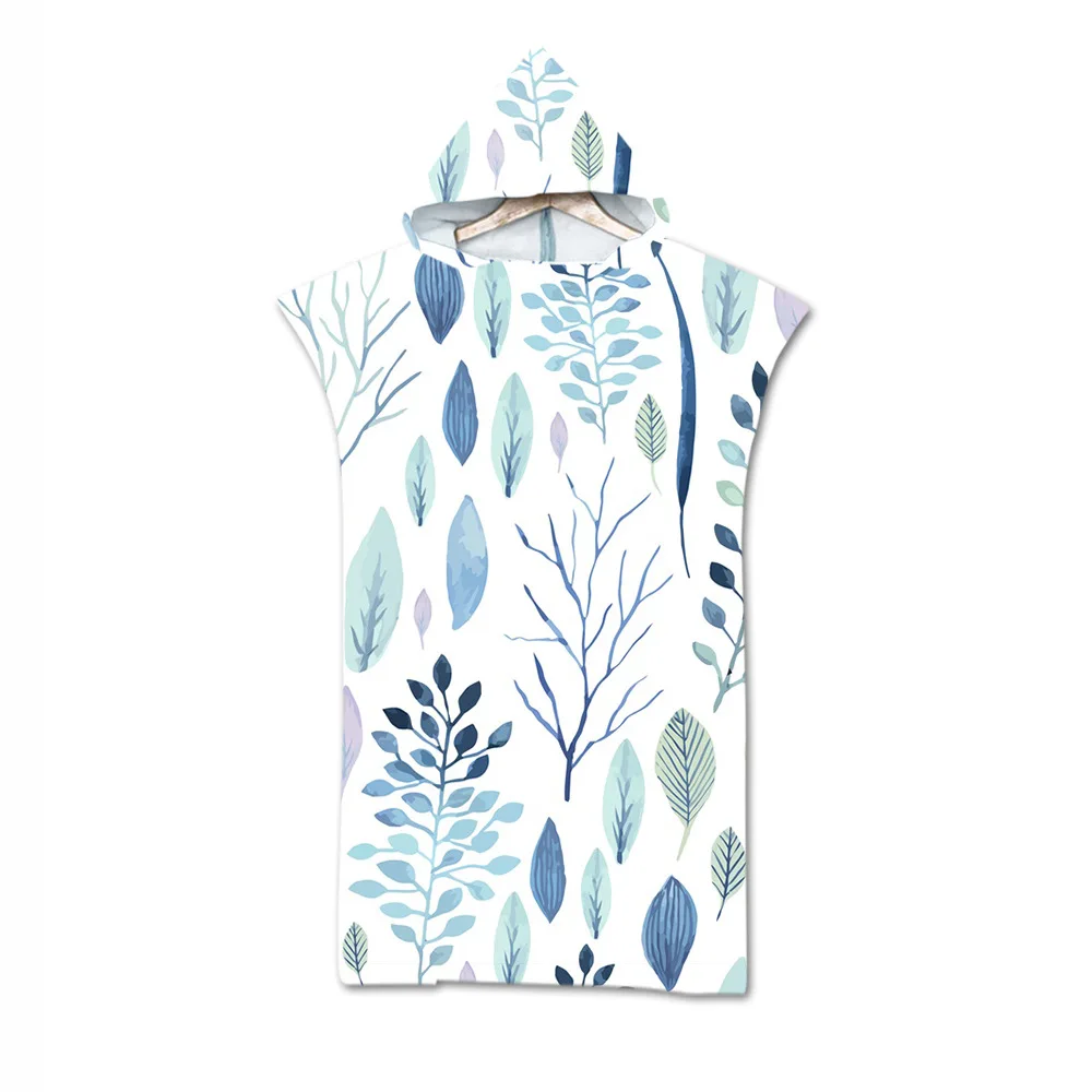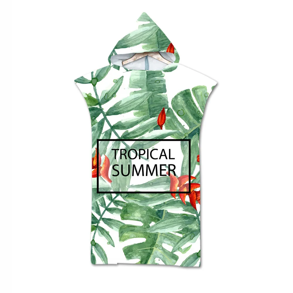 Пляжное полотенце-пончо с капюшоном и зелеными листьями для взрослых на открытом воздухе