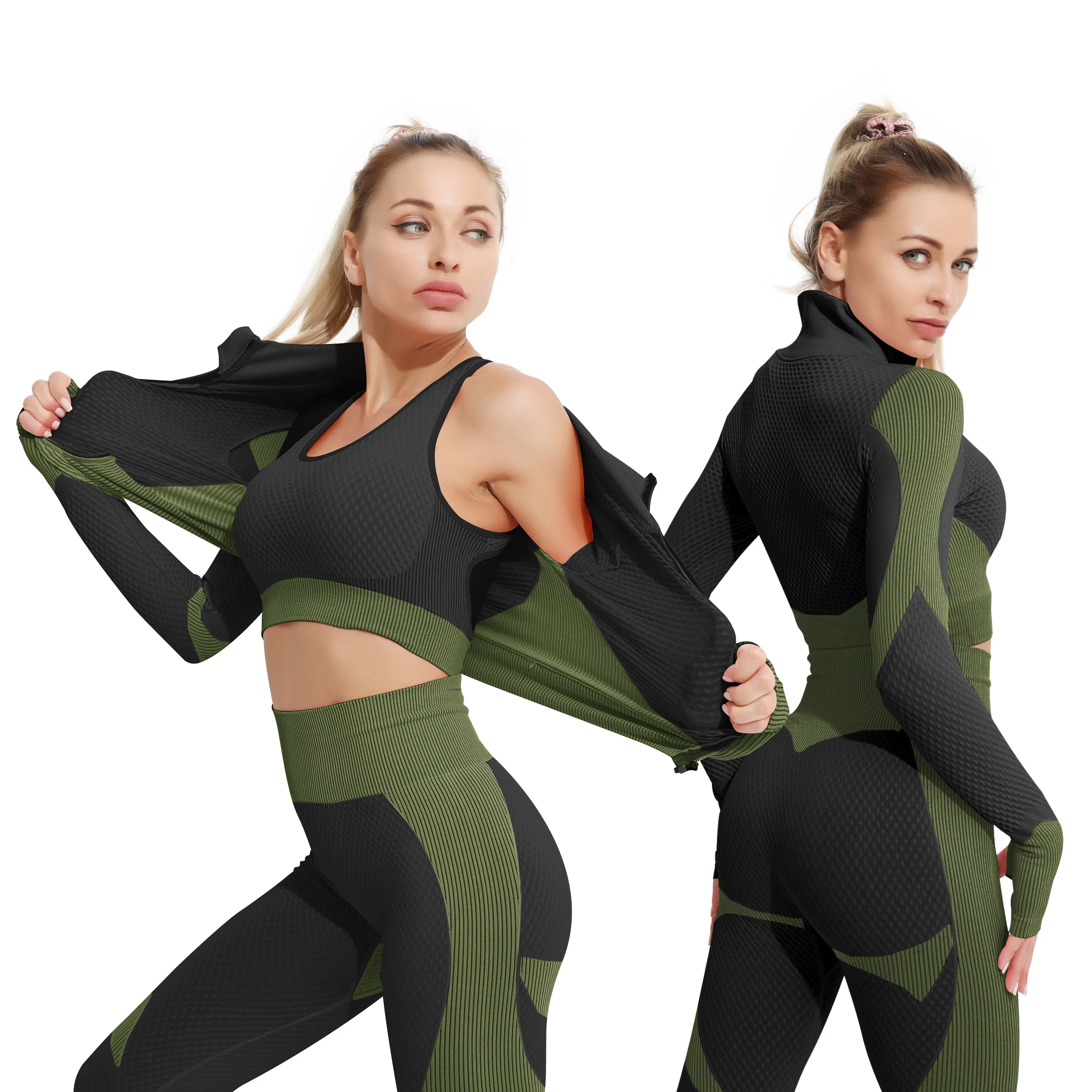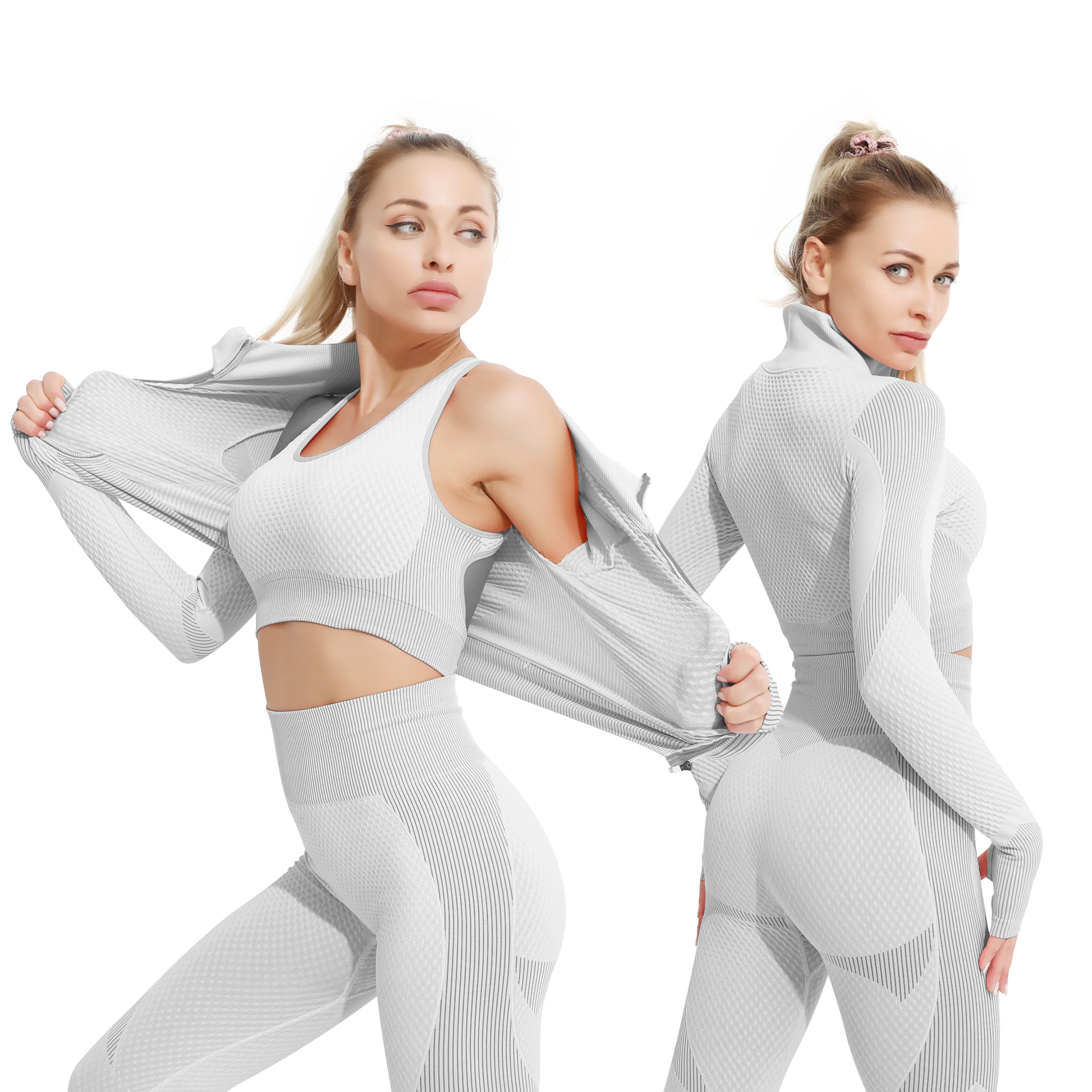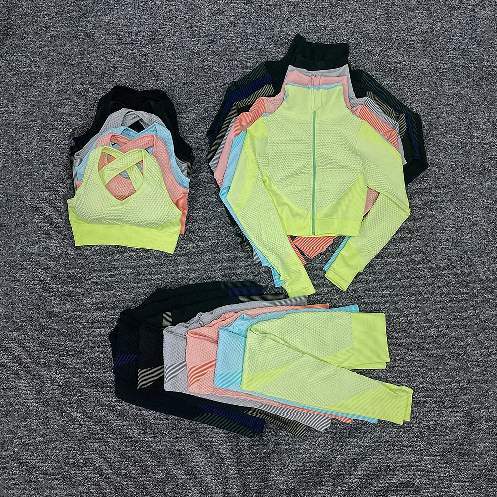 Женский спортивный костюм из 23 предметов, тренировочная одежда для женщин, костюм для фитнеса, леггинсы, бюстгальтер, топ на молнии, комплекты для йоги, спортивная одежда для спортзала