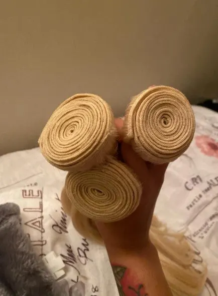 Эти волосы ужасно! Для начала волосы не 613... Это больше горчичного цвета и требует сильного тонизирования. Пучки полны секущихся кончиков прямо там, где начинается пучок, и есть черные (да, черные) волосы в светлых прядях, чтобы увеличить объем волос. Пучки линяют, как сумасшедшие, и вы должны запечатать утки, иначе они просто выскальзывают между пальцами. Концы волос очень тонкие, и когда вы раскатываете утки, они станут огромным матовым шариком из сильно тонких волос. Это должно быть одним из худших поставщиков волос на AliExpress... серьезно, Я потратил более $570,00 (больше половины), чтобы получить эти волосы в мою страну, и это так себе, не стоит этого! Фотографии, которые вы видите в отзывах, также включены в список для пучков на AliExpress, чтобы вы могли сказать, что это плохой и поддельный продавец. Очень разочарован... И сверху все выключено... Доставка длится всегда, и волосы пахнут. Не совершайте ту же ошибку, что я сделал Леди-Возьмите ваши деньги в другом месте!