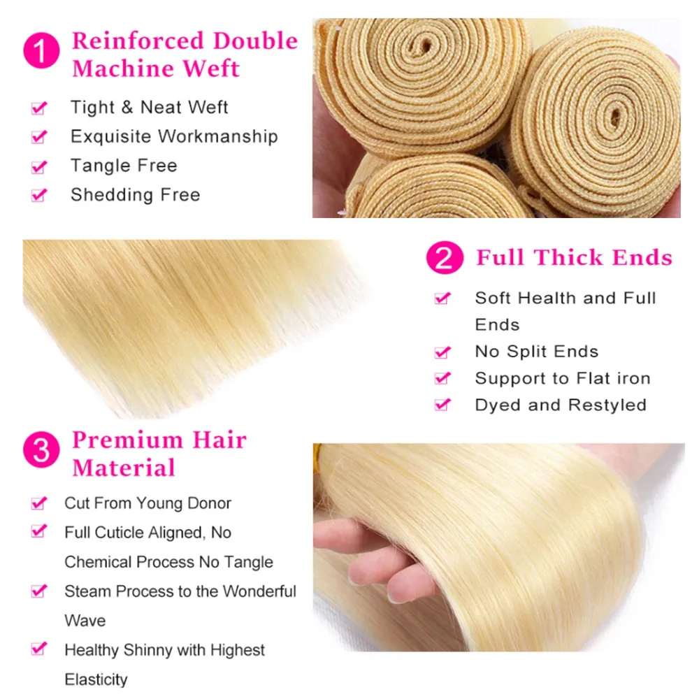 24 26 28 30 дюймов 613 блонд прямой Бразильский Плетение медового цвета 3 4 пучка 100% натуральные человеческие волосы двойное наращивание