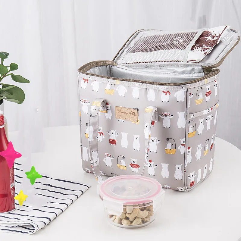 Графическая сумка-холодильник для ланча, складная уличная переноска для еды, переносной изоляционный пакет для льда, Термосумка для лагеря, пикника, детская школьная сумка