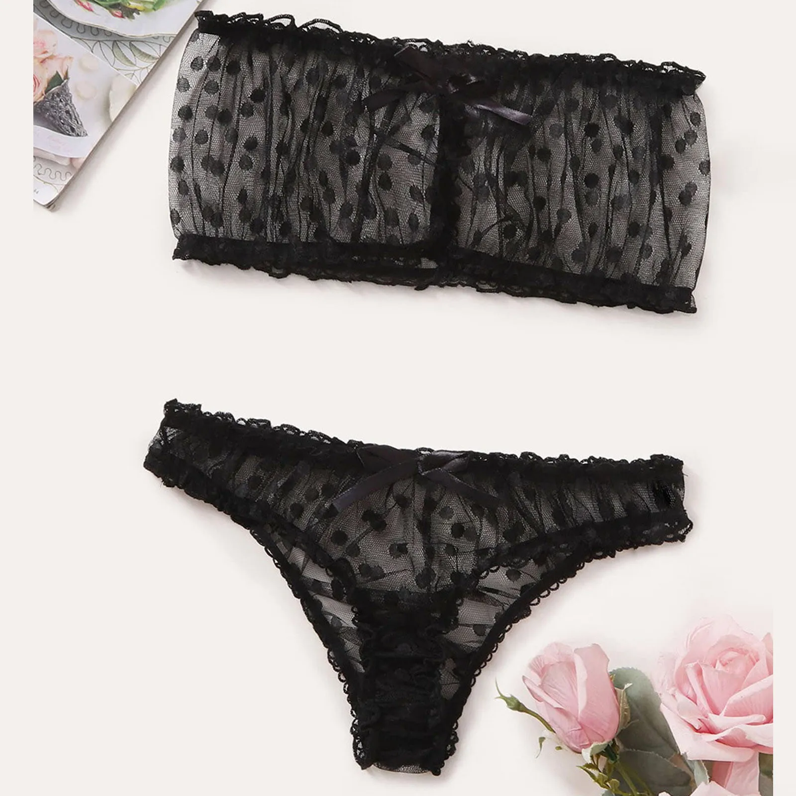 Сексуальный сетчатый комплект нижнего белья, женское модное черное нижнее белье в горошек, женское кружевное сексуальное Боби-кукла, Экзотическая одежда, нижнее белье