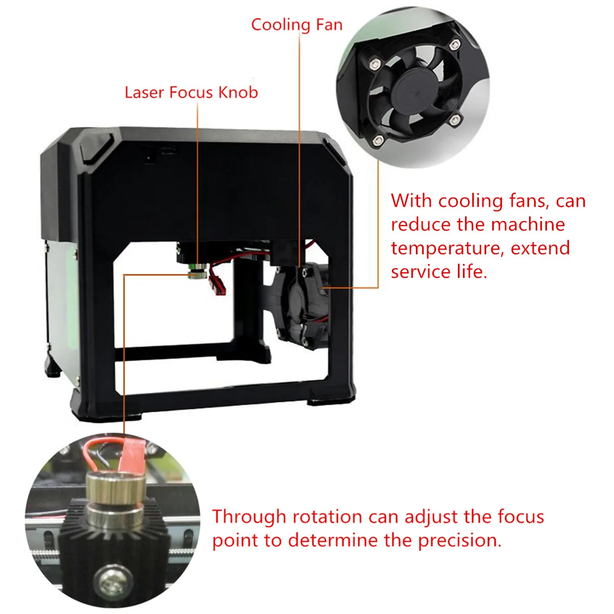 *Ручка лазерного фокуса, с помощью вращения можно регулировать точку фокусировки для определения точности.