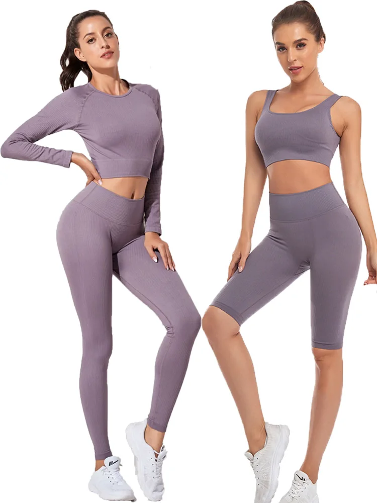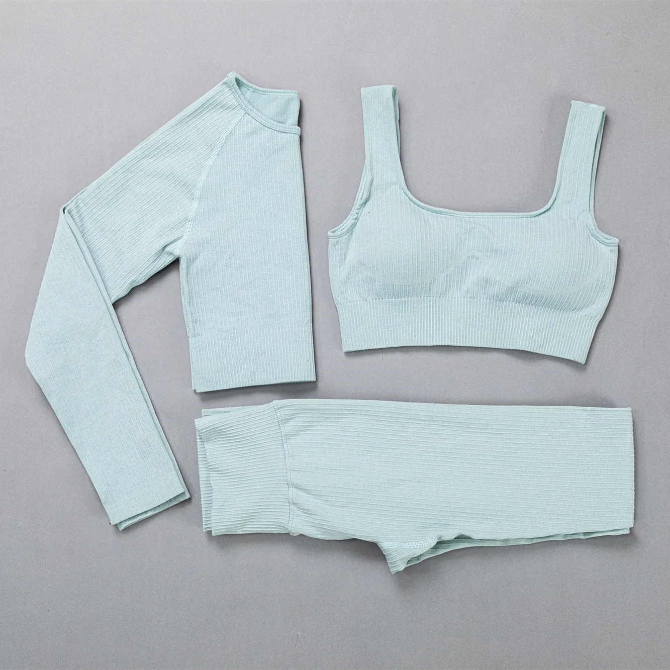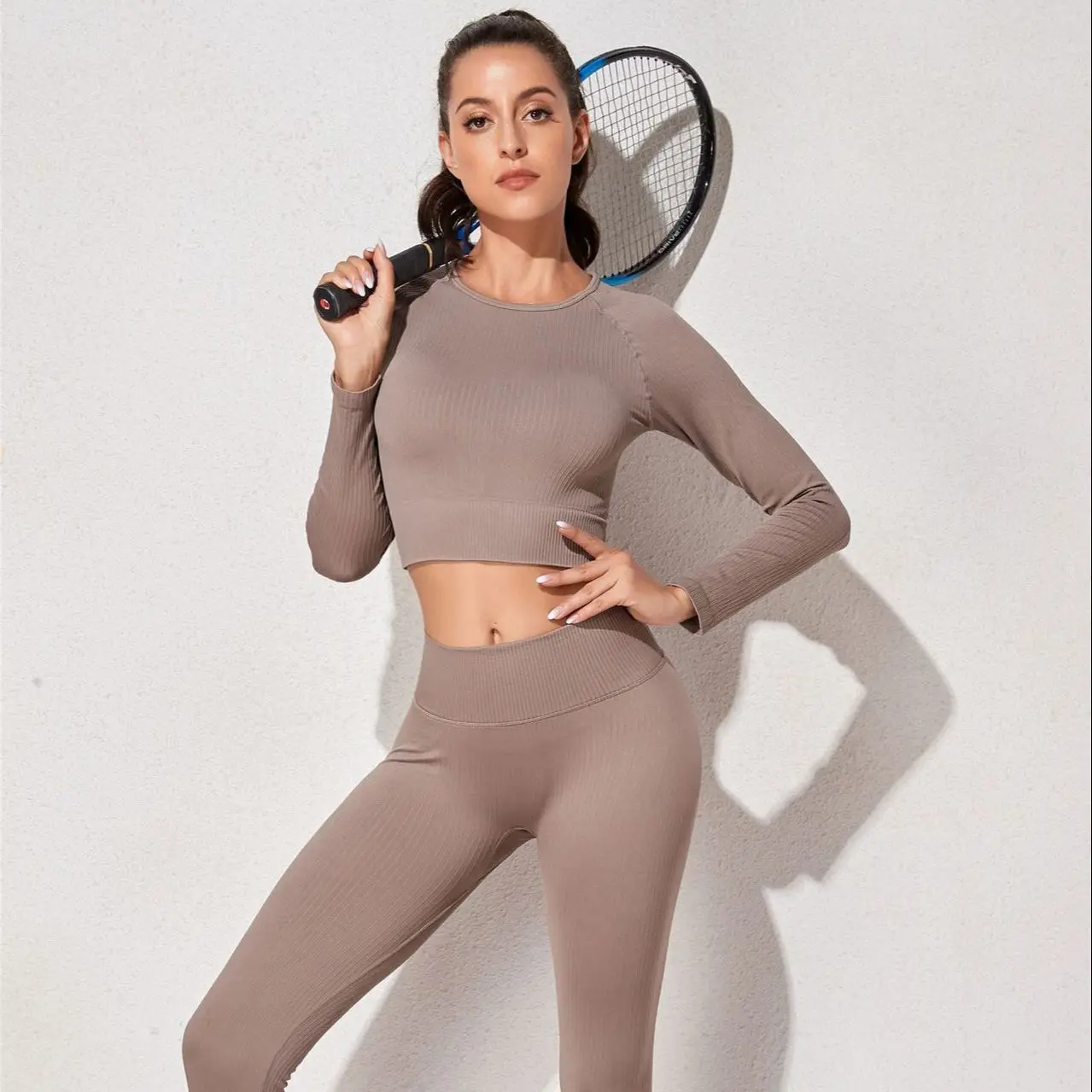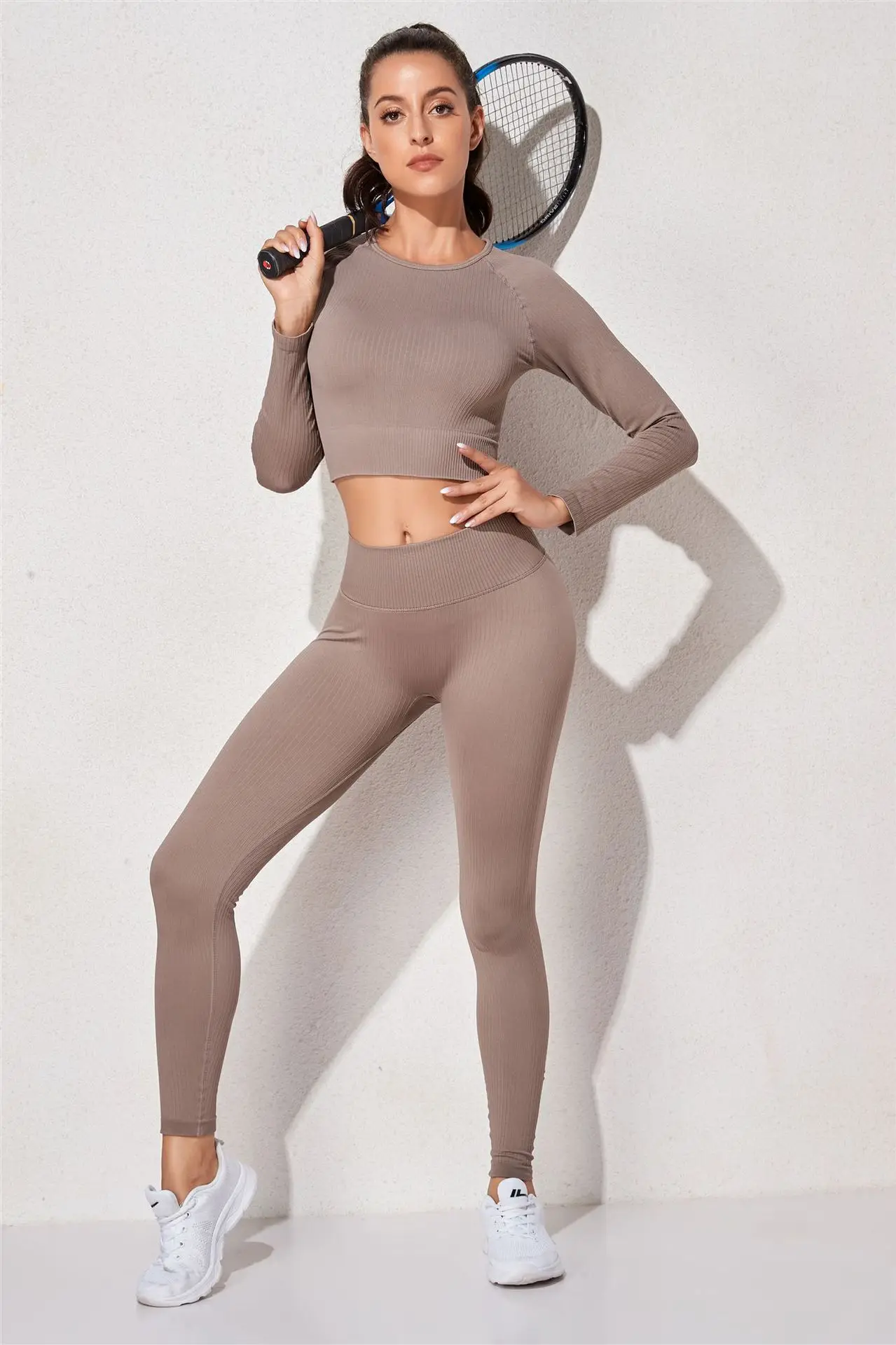 Женский спортивный комплект для йоги, одежда для тренировок, спортивная одежда, леггинсы для спортзала, бесшовный бюстгальтер для фитнеса, укороченный топ с длинным рукавом, костюм для йоги