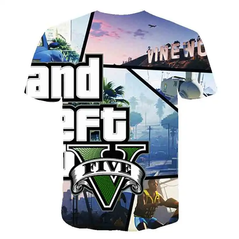 2021 летние футболки Grand Theft Auto Game GTA 5 для мальчиков, кру...