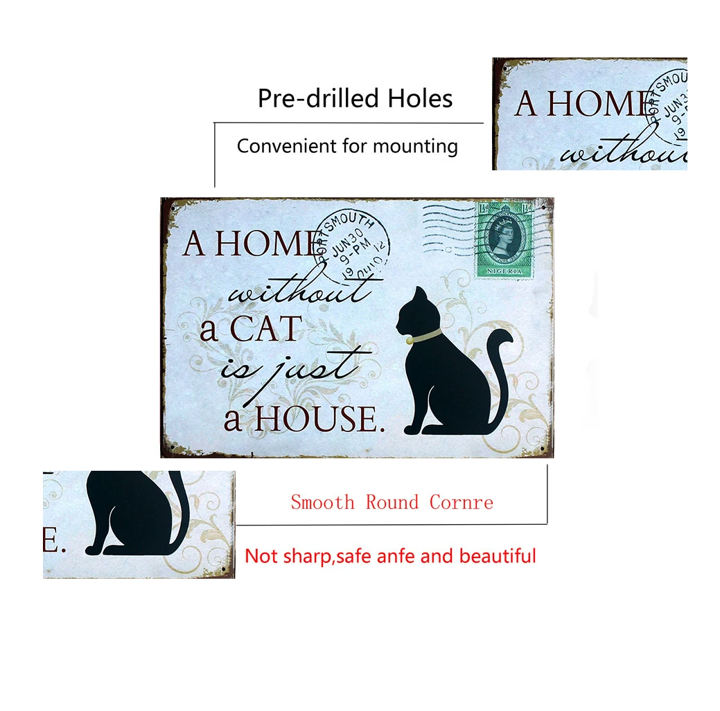 Винтажные жестяные знаки дома без кошки, это только домашнее вниман...