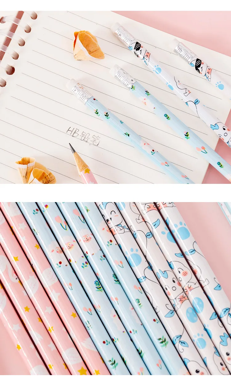 10 шт.лот студенческий деревянный карандаш с ластиком HB, милый кар...