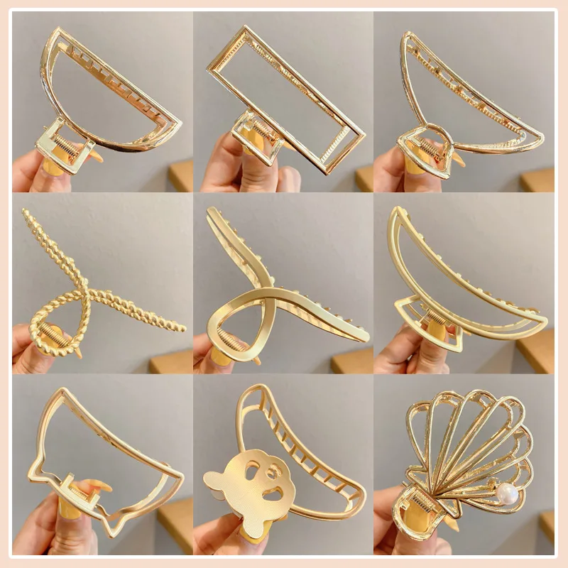 Заколка-краб для волос женская, металлическая, золотистая, Геометрическая, винтажная, 2021, заколки для волос головная повязка