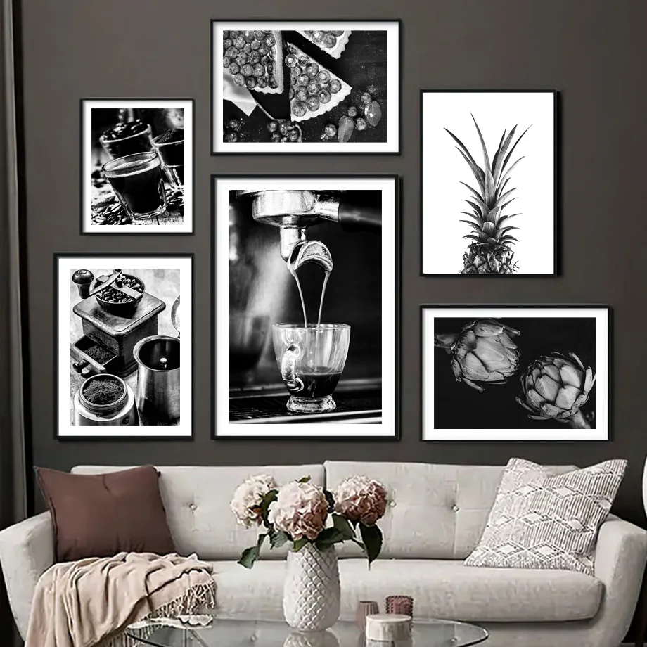 Винтаж Черно-белая кофе-машина Настенная картина холст плакат ананас нордическая картина для гостиной спальни украшение дома