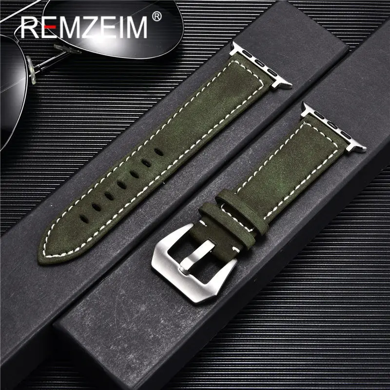 Матовый кожаный ремешок для Apple Watch Band 44 мм 40 мм 42 мм 38 мм, аксессуары для смарт-часов, браслет для iWatch 3 4 5 6 7 se со стальной пряжкой