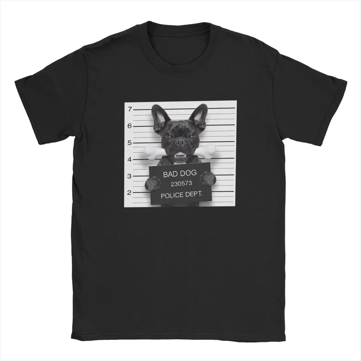 Забавные футболки с французским бульдогом Mugshot для мужчин, шикарная футболка для любителей собак из 100% хлопка с круглым вырезом