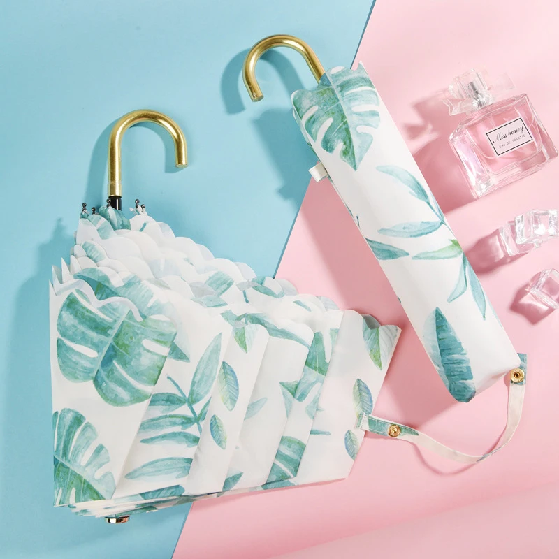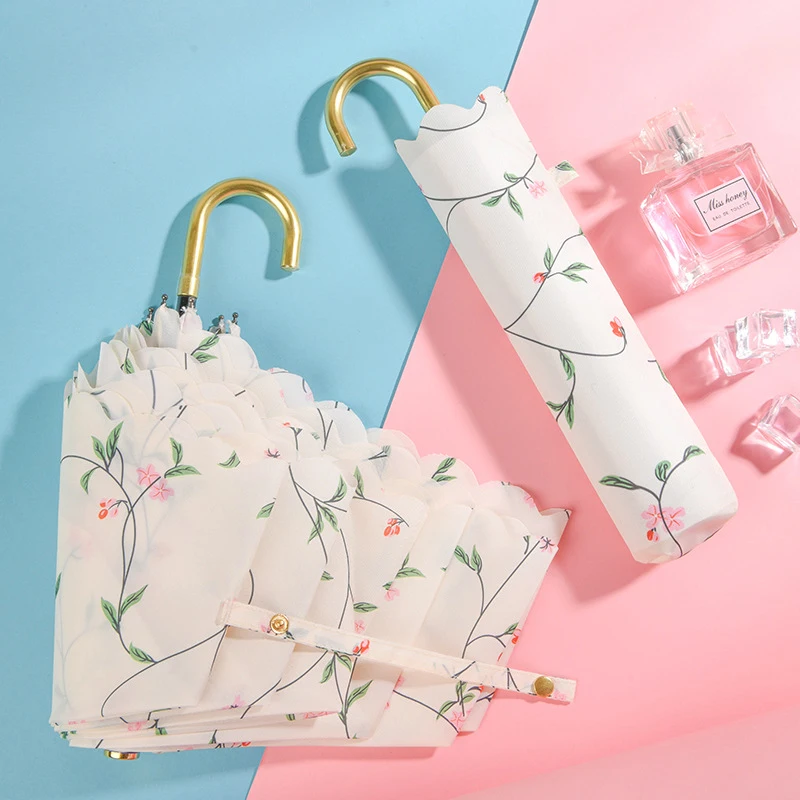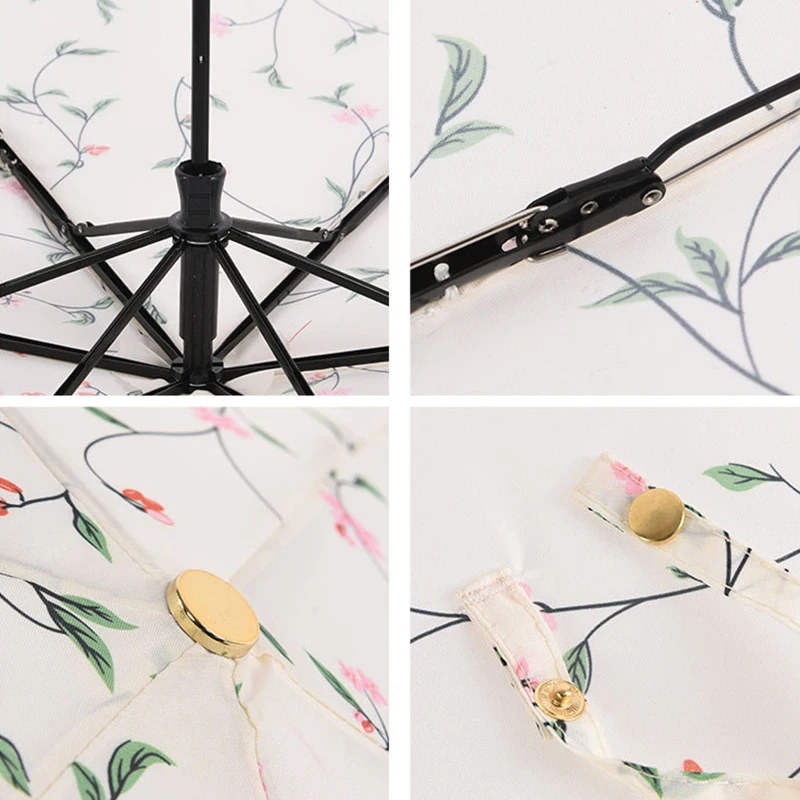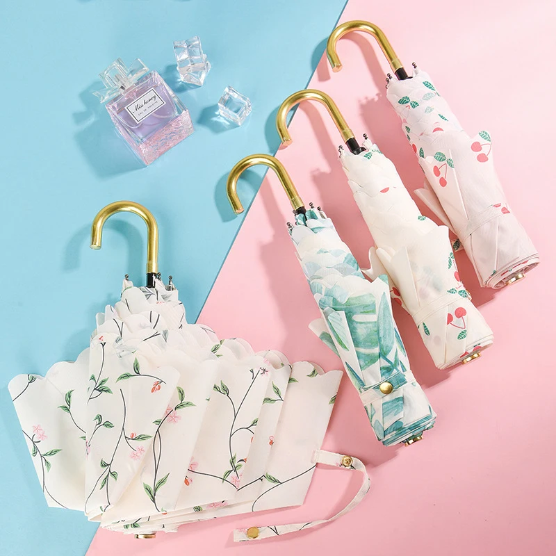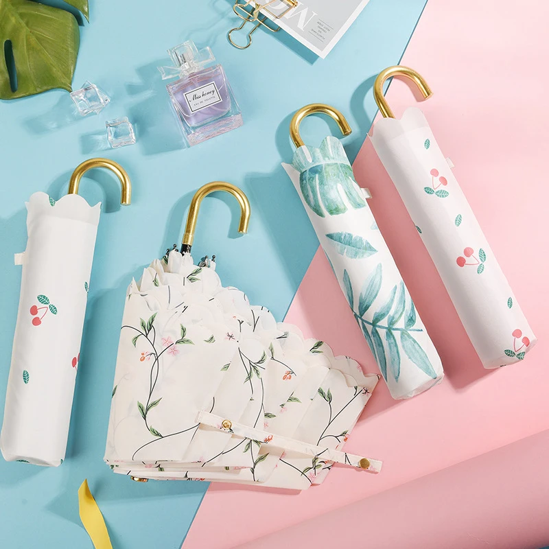 Зонтик Вишневый женский складной, стильный Карманный ветрозащитный креативный зонтик от солнца и дождя для девушек и женщин с цветами