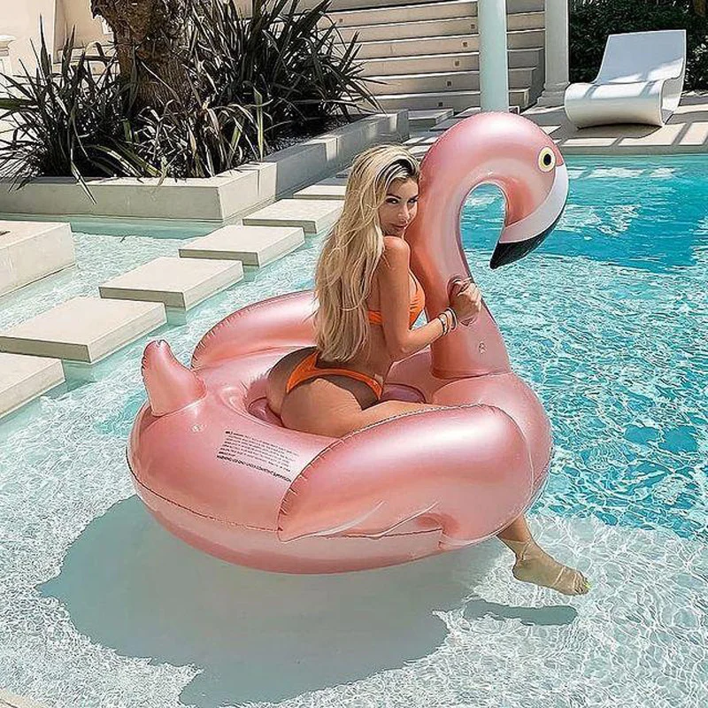 Надувной плавательный бассейн с розовым золотом и фламинго, поплаво...