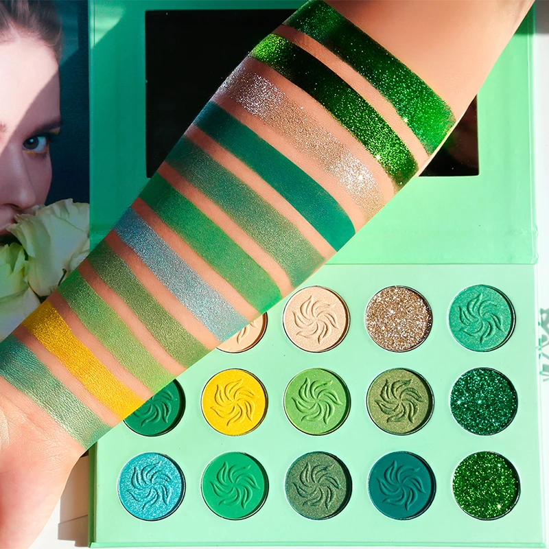 Палитра теней для макияжа, Палетка ярких пигментированных блестящих теней для век, зеленые, синие, оранжевые, фиолетовые, для макияжа, 15 цветов