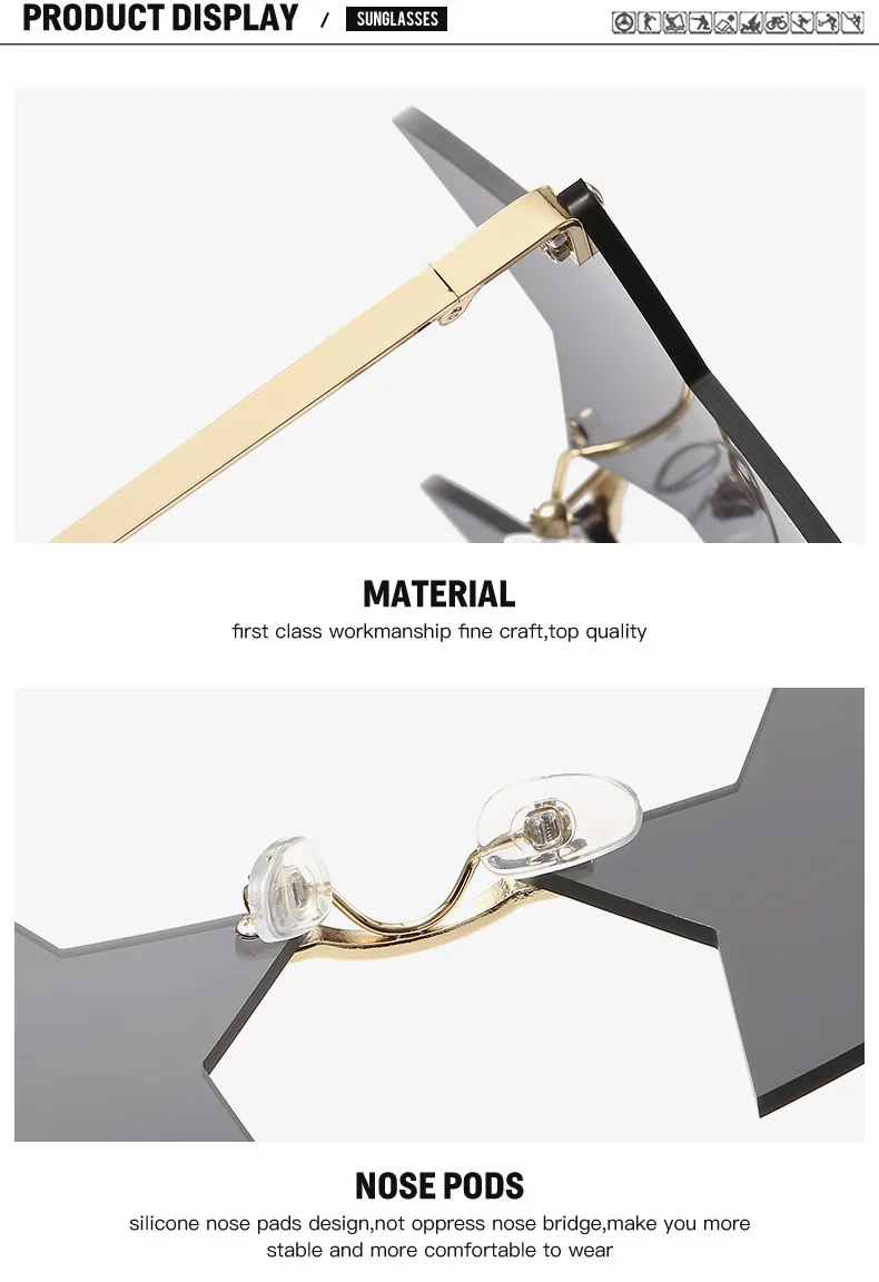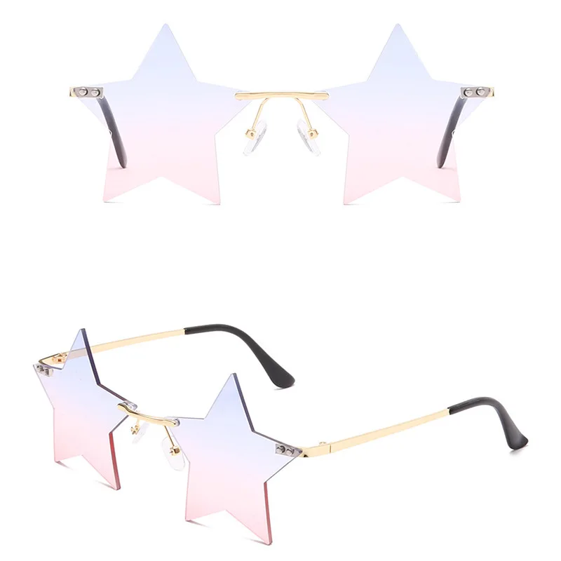 Винтажные солнцезащитные очки, женские солнцезащитные очки с зеркалом в виде звезды, без оправы, мужские безрамные модные солнцезащитные очки, очки для водителя, декоративные очки
