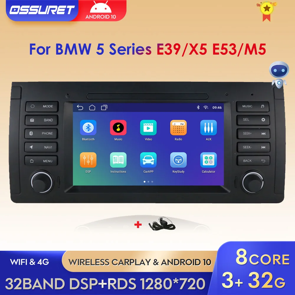 Автомагнитола Carplay 4GWIFI Plus для BMW 5 серии E39 X5 E53 M5, му...