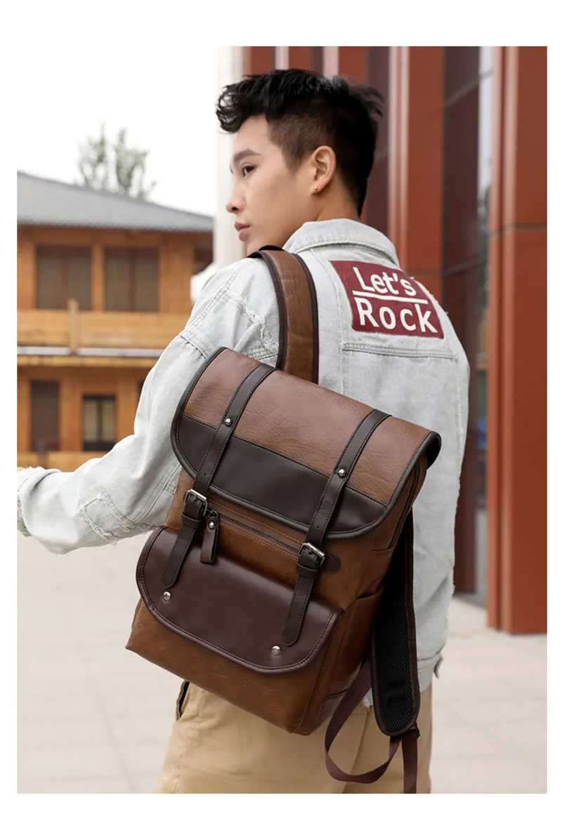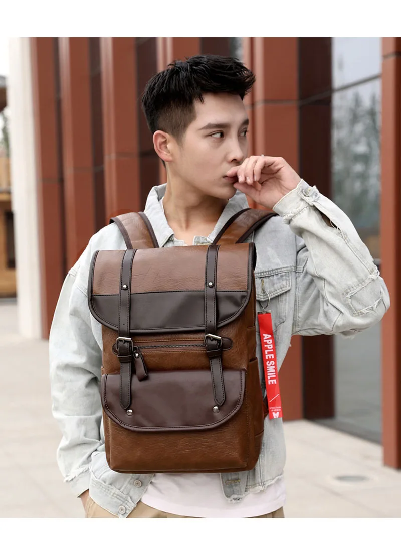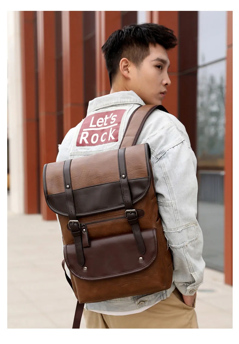 Винтажный Мужской рюкзак, повседневный мужской рюкзак из искусствен...