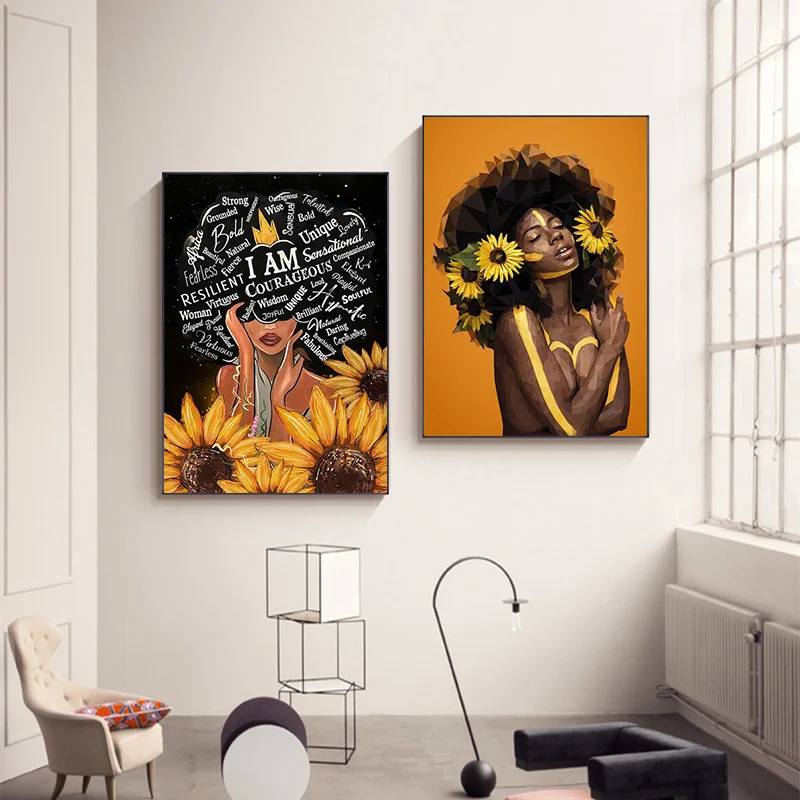 Абстрактная Картина на холсте, с изображением черной королевы с цветами, в скандинавском стиле, Настенная картина, украшение для дома и спальни