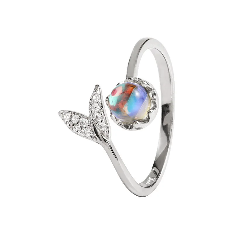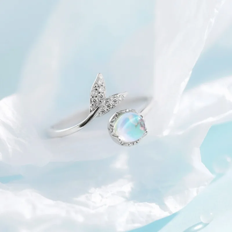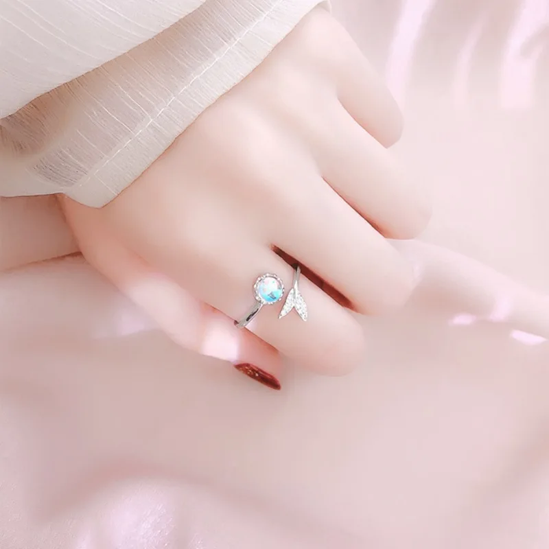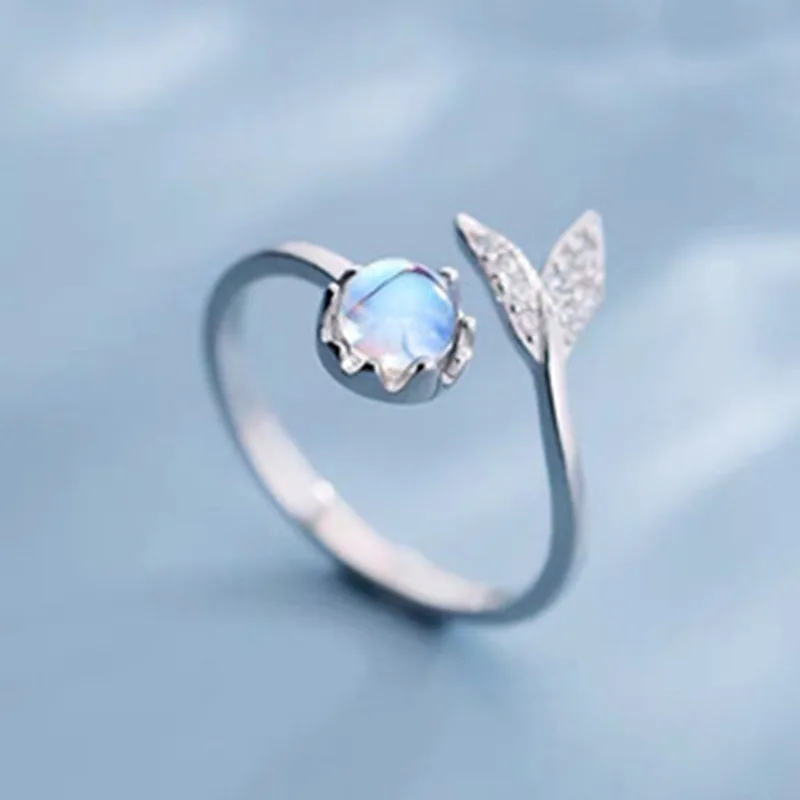 Женское кольцо с лунным камнем в виде хвоста русалки из Южной Кореи, модное кольцо с милой рыбкой, регулируемые кольца с художественным дизайном, ювелирные изделия для женщин