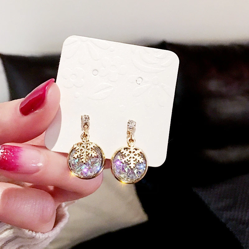 Симпатичные рождественские серьги-гвоздики для женщин Стразы снежин...