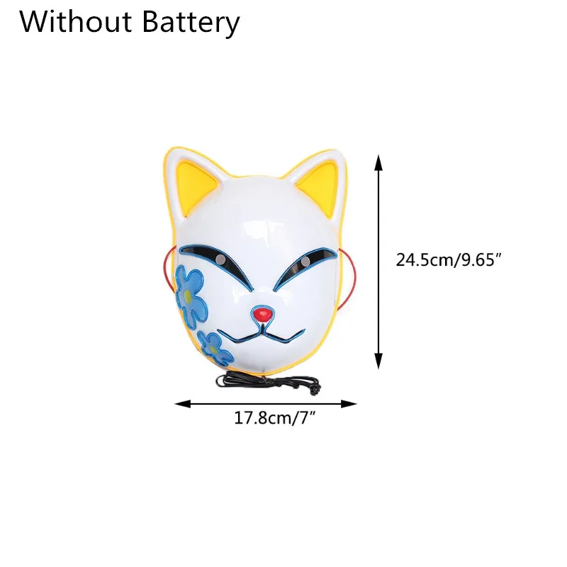 Забавная светодиодная светящаяся маска унисекс, Хэллоуин, мигающая маска, японское аниме, косплей, призрачное лезвие, реквизит, лисы, лицевая маска в виде кошки