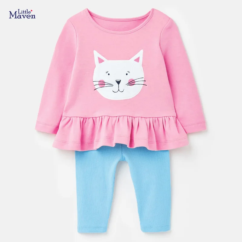 Little maven Baby Girls Casual Clothes Autumn Sets with Cartoon Alpaca Pink T-shirt Cotton Clothes for kids 2 to 7 years