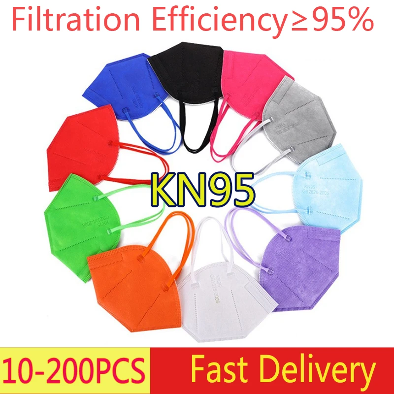 10-100 шт KN95 маска 10 цветов FFP2 Mascarillas Negras многоразовая KN95 маска для лица 5 слоев одобренная FPP2 респираторная маска PM053