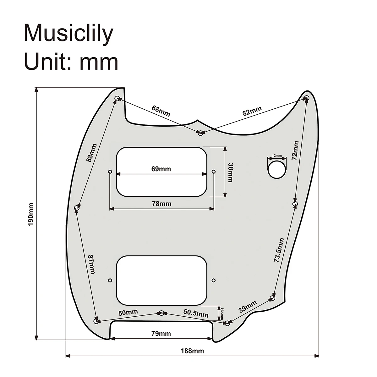 1. Подходит для электрогитары в стиле Squier Mustang HH, например, серии Bullet. Если вы используете его для другой гитары Mustang style, вам может потребоваться модификация для линейки