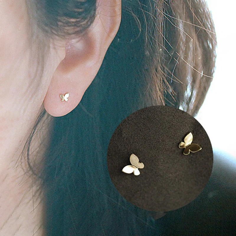Женские серьги-гвоздики из серебра 925 пробы, с бабочкой