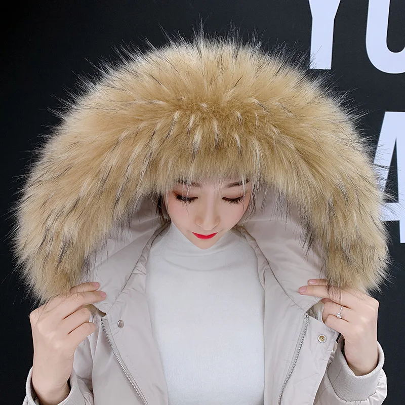 Женская искусственная кожа 100% высококачественные роскошные большие мужские шарфы зимнее пальто капюшон меховой Декор теплые шарфы из искусственного меха