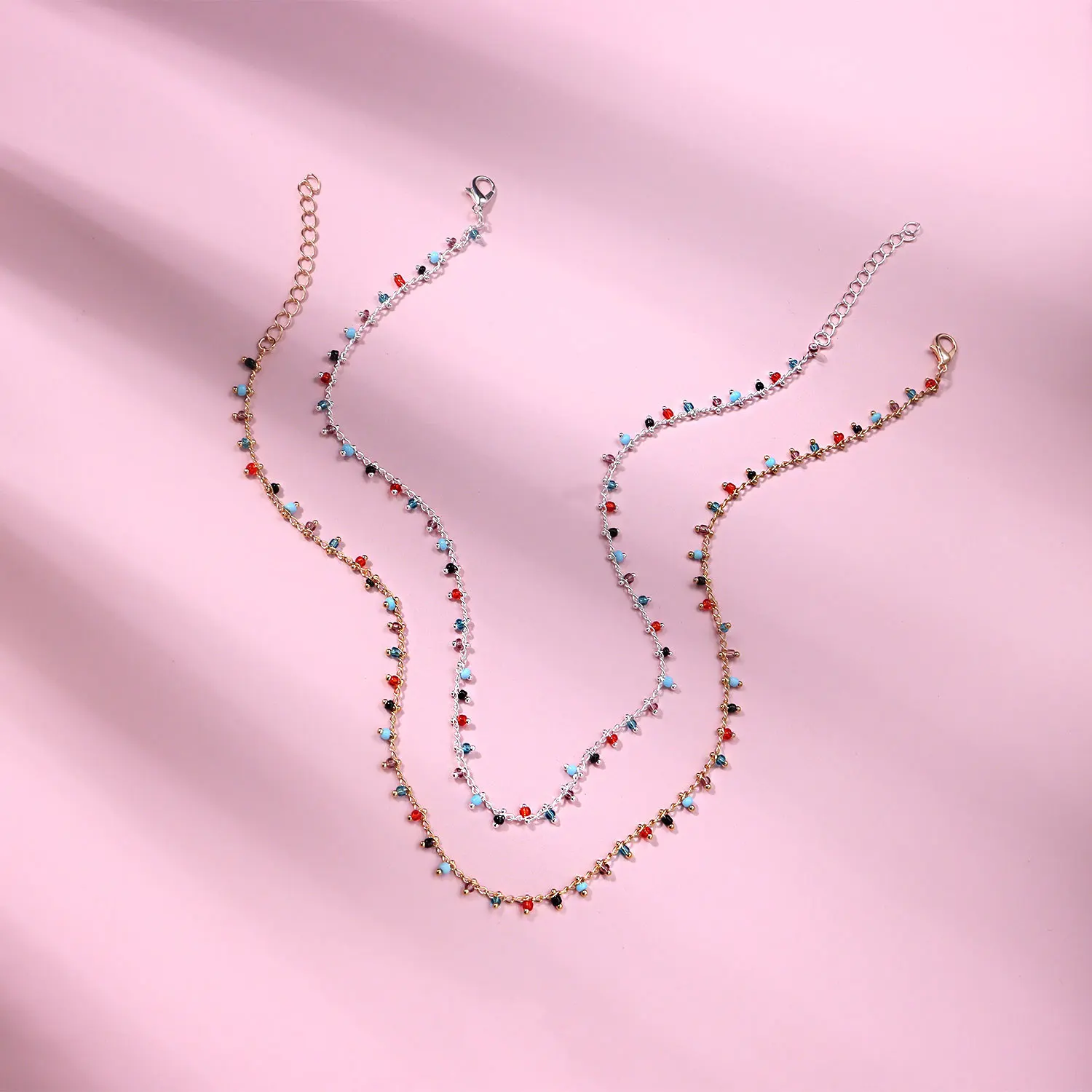 Ожерелье-чокер с разноцветными бусинами на цепочке до ключиц для же...