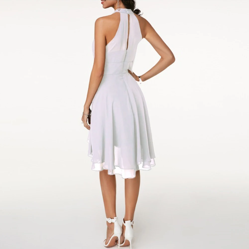 Платье женское шифоновое средней длины, элегантный укороченный сарафан с завышенной талией, халтер, без рукавов, вечерние тонное Вечернее приталенное, на лето