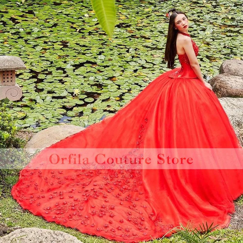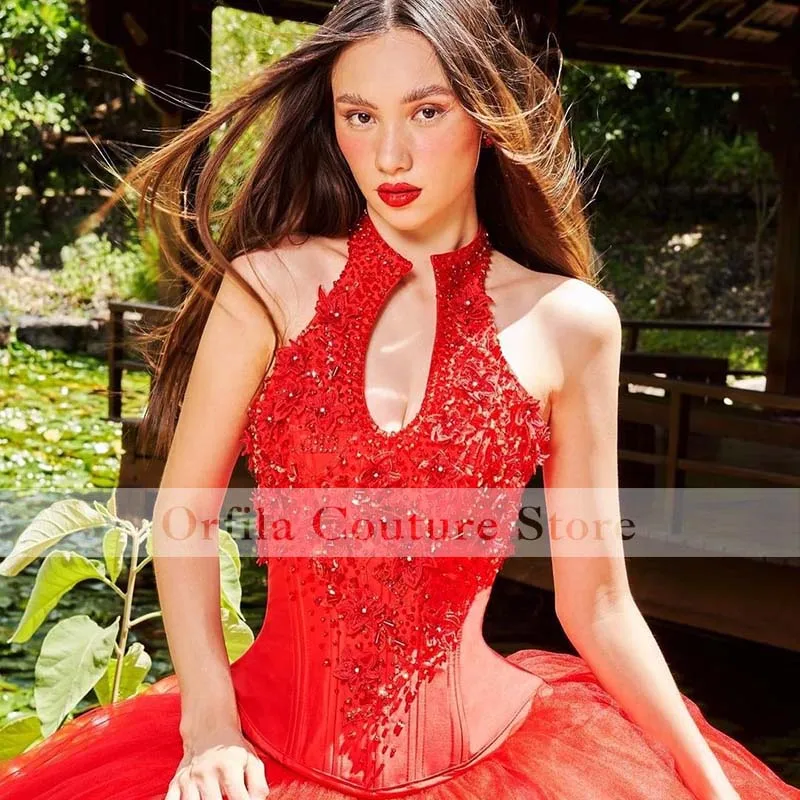Красное милое платье 16 Quinceanera, блестящее кружевное вечернее п...