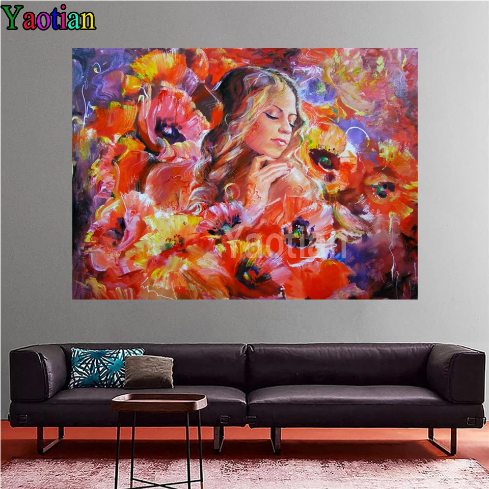 YaotiaYaotian 5D алмазная картина абстрактная девушка с маками полная дрель квадратная Вышивка крестом распродажа Алмазная вышивка домашний декор