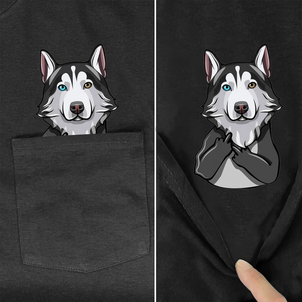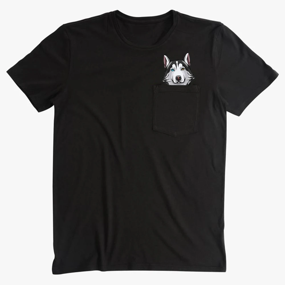 Черная хлопковая Футболка CLOOCL с изображением животных, смешной подарок хаски, идеи карманов, футболка с принтом, модные хлопковые футболки в стиле хип-хоп, топы