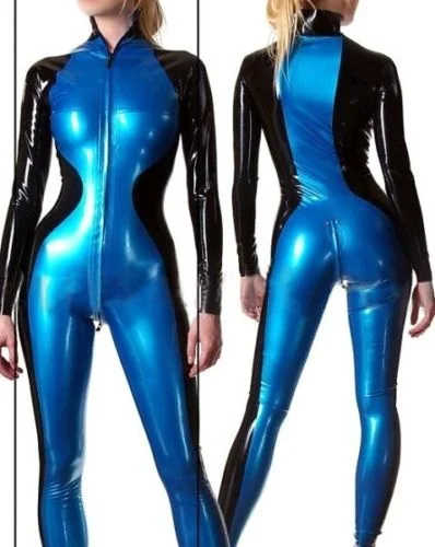 Комбинезон из латекса и резины, голубой, с черной оболочкой, размер...