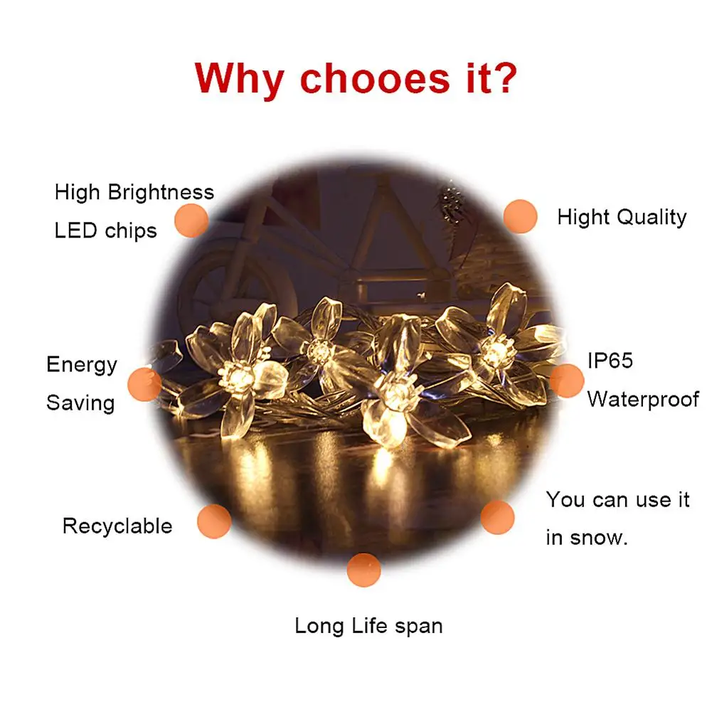 2050LED Солнечный вишни строка светильник Открытый Двор Декоративна...