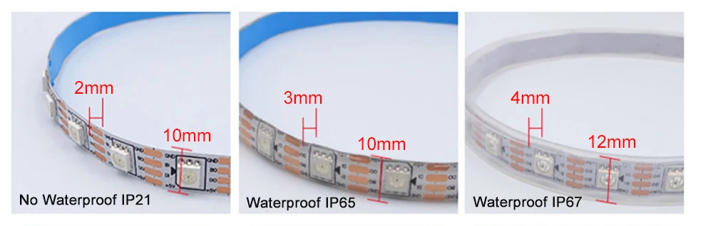Ширина печатной платы: 10 мм (водонепроницаемый IP65/не водонепроницаемый IP21), 12 мм (водонепроницаемый IP67)Цвет печатной платы: белый