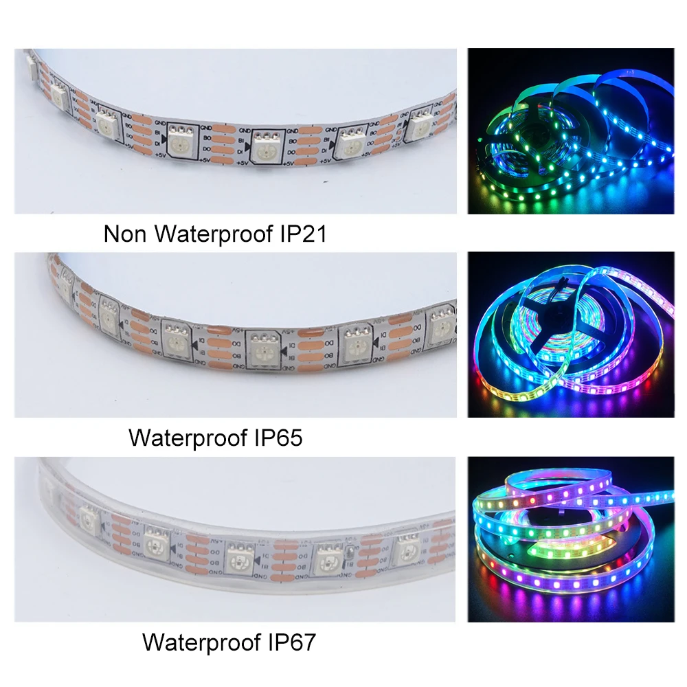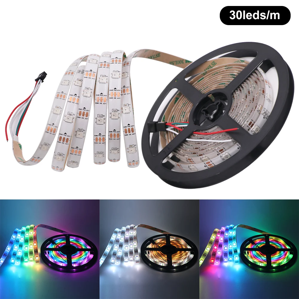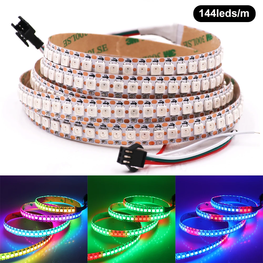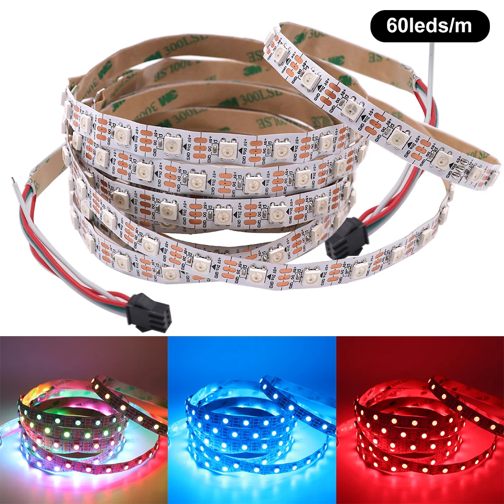 Гибкая светодиодная ленсветильник RGB WS2812B, 5 в постоянного тока, белый PCB, 30 светодиодовм, 60 светодиодовм, 144 светодиодам, водонепроницаемая IP21IP65IP67, 1 м, 2 м, 3 м, 4 м, 5 м