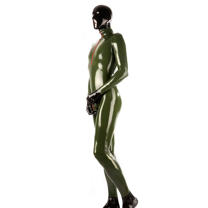 Комбинезон латексный армейский зеленый с молнией спереди, резиновый комбинезон, униформа ручной работы (без капюшона, без перчаток)