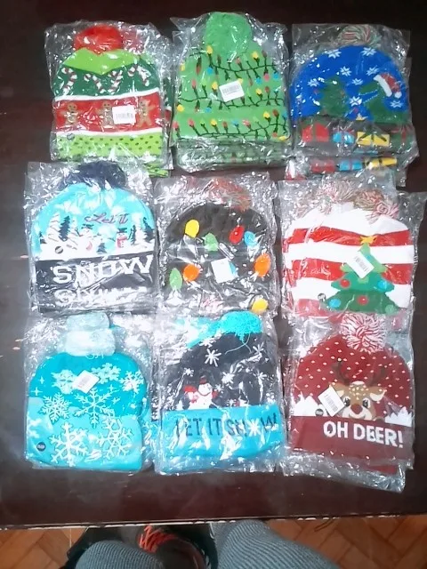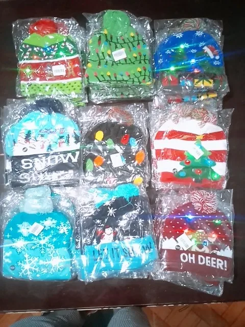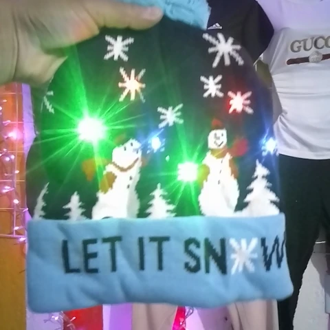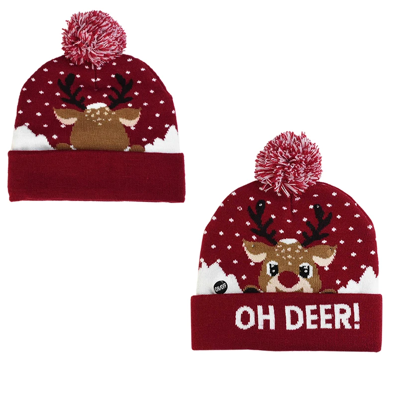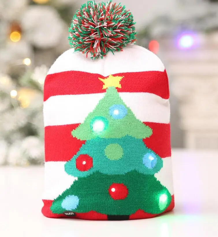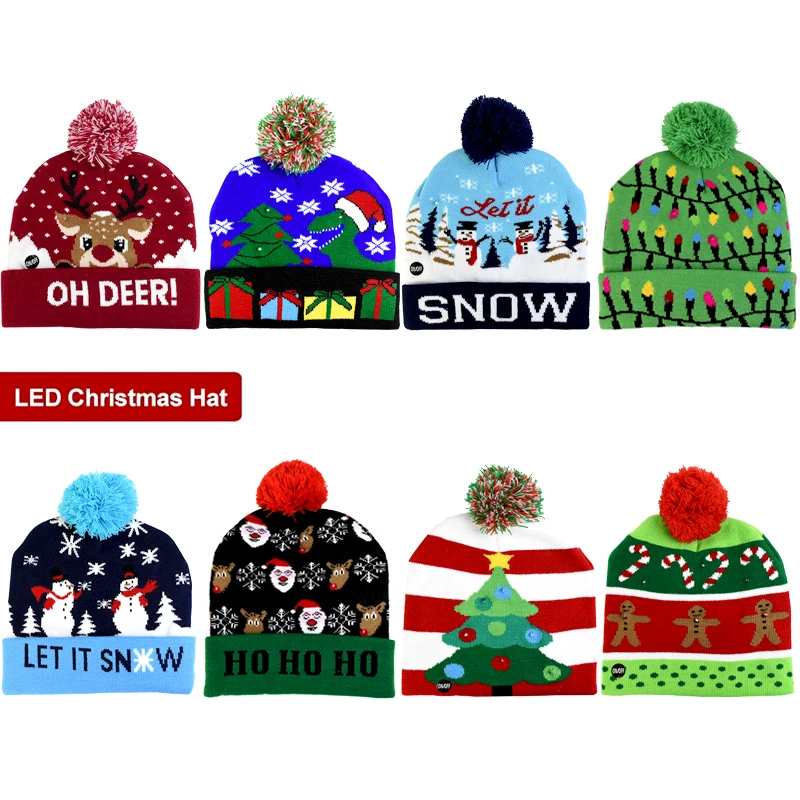 Рождественские шапки со светильник кой свитер Вязаная Шапка-бини с ...