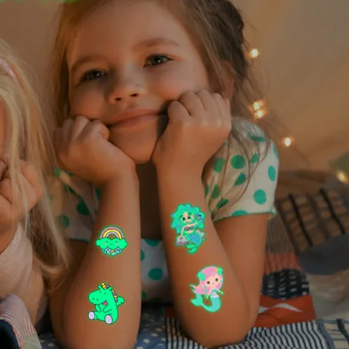 Светящиеся тату-наклейки для детей, временные Сияющие татуировки дл...