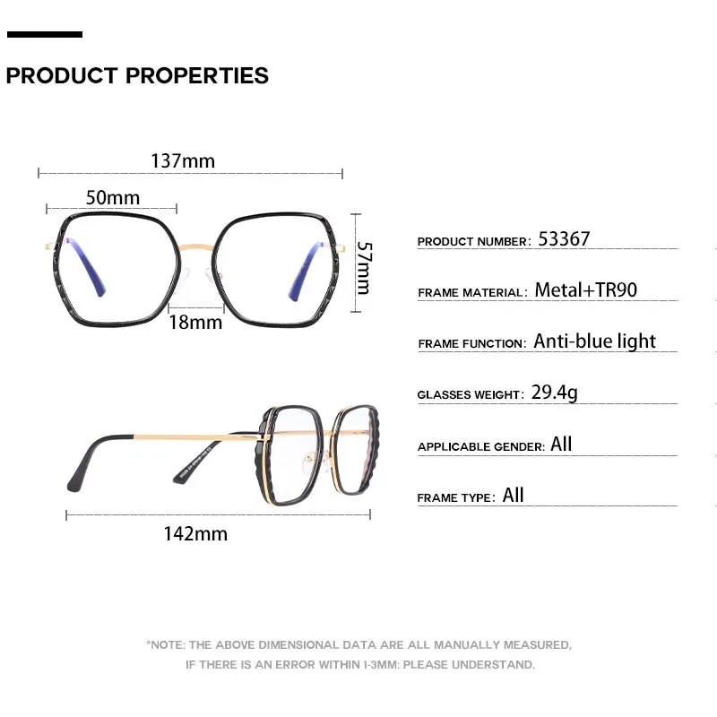 53367 TR90 Женский анти-синий светильник, оптическая оправа для очков, полигон, модные компьютерные очки