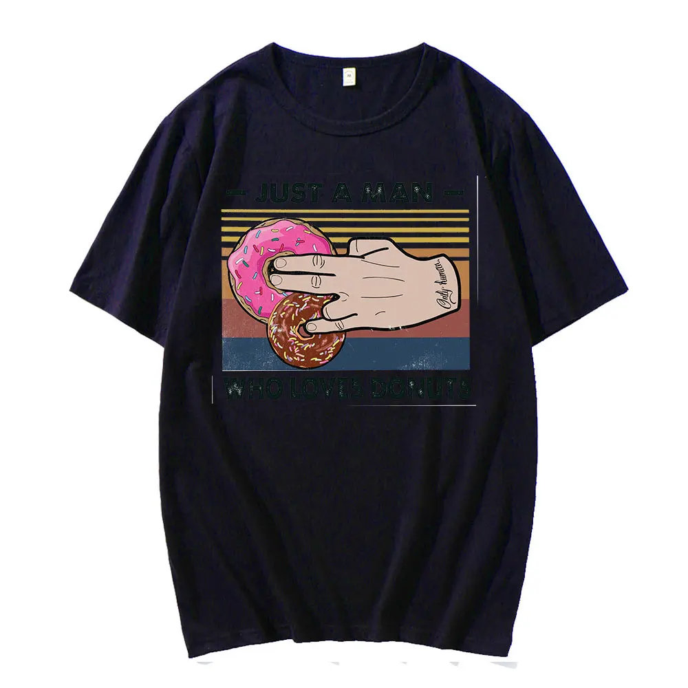 Новинка 2021, стильные футболки с надписью Just A Man Who Loves-Donuts, лидер продаж, популярная модная футболка, забавная Классическая футболка Unsiex