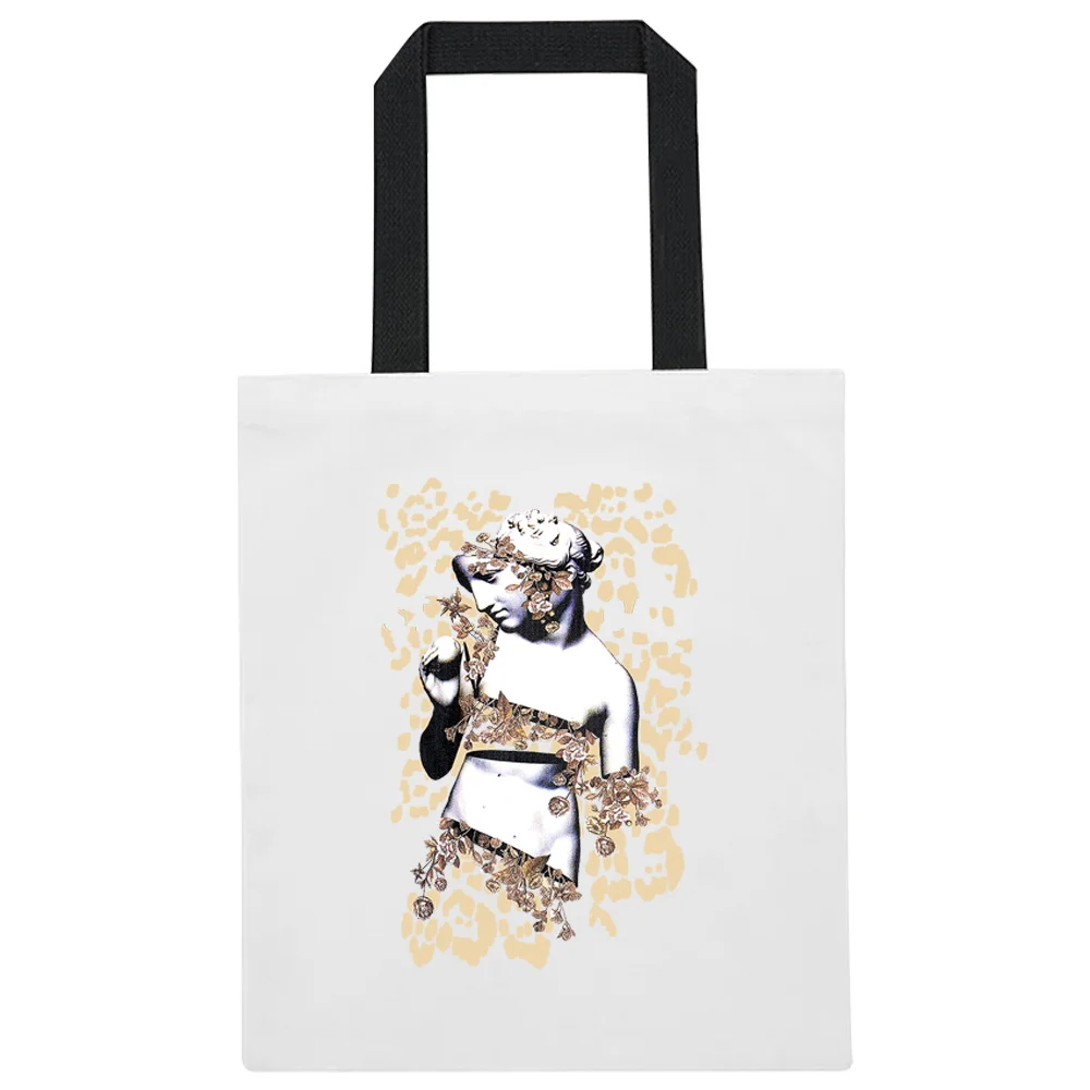 Женская сумка-шоппер на плечо, серия с золотистыми буквами и цветоч...